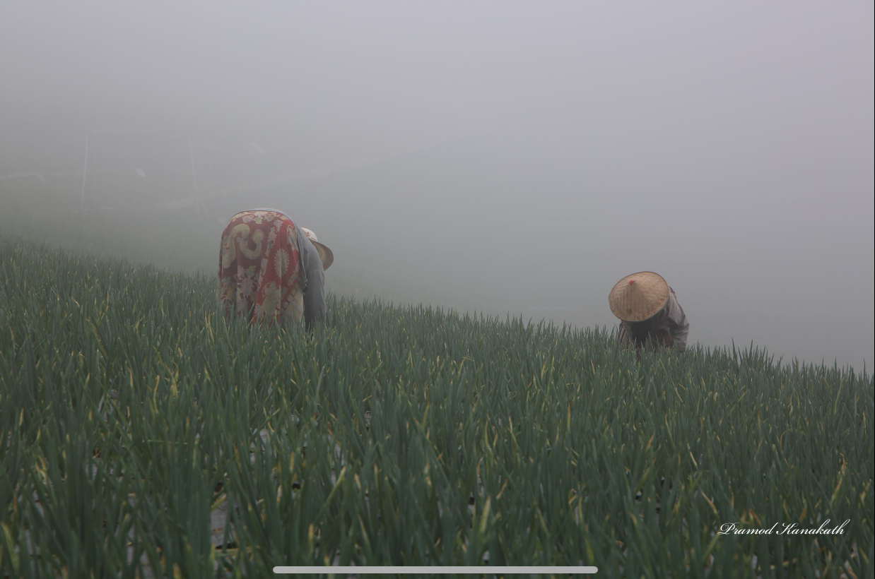 The relentless fog means we cannot not see the village nor the vegetable cultivation in their resplendent best, however, we opt for a walk along the veggie plantations in Sukomakmur (on the west side of the village) and chat with ladies working on scallion fields. We can only see their outlines as we get within 10 metres from them.